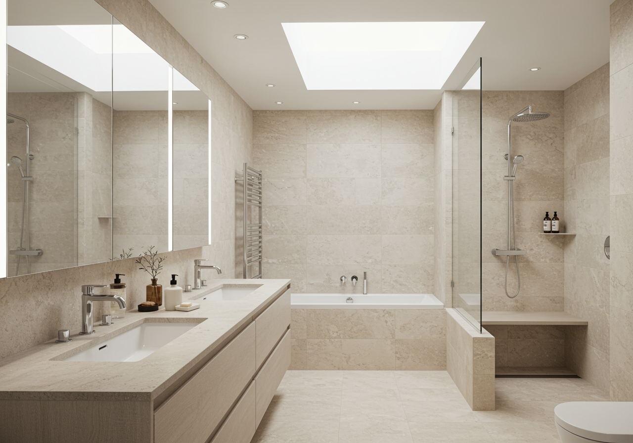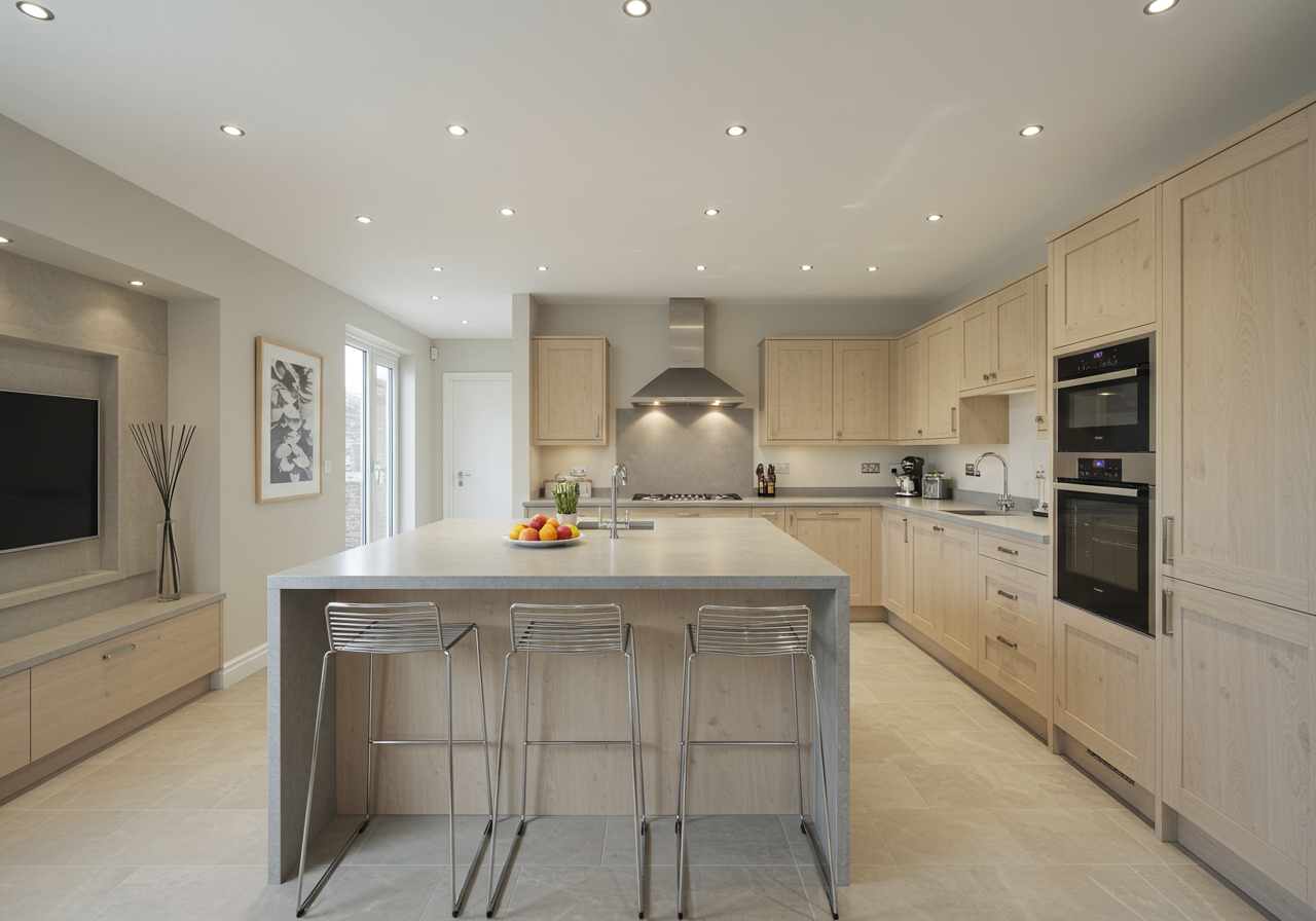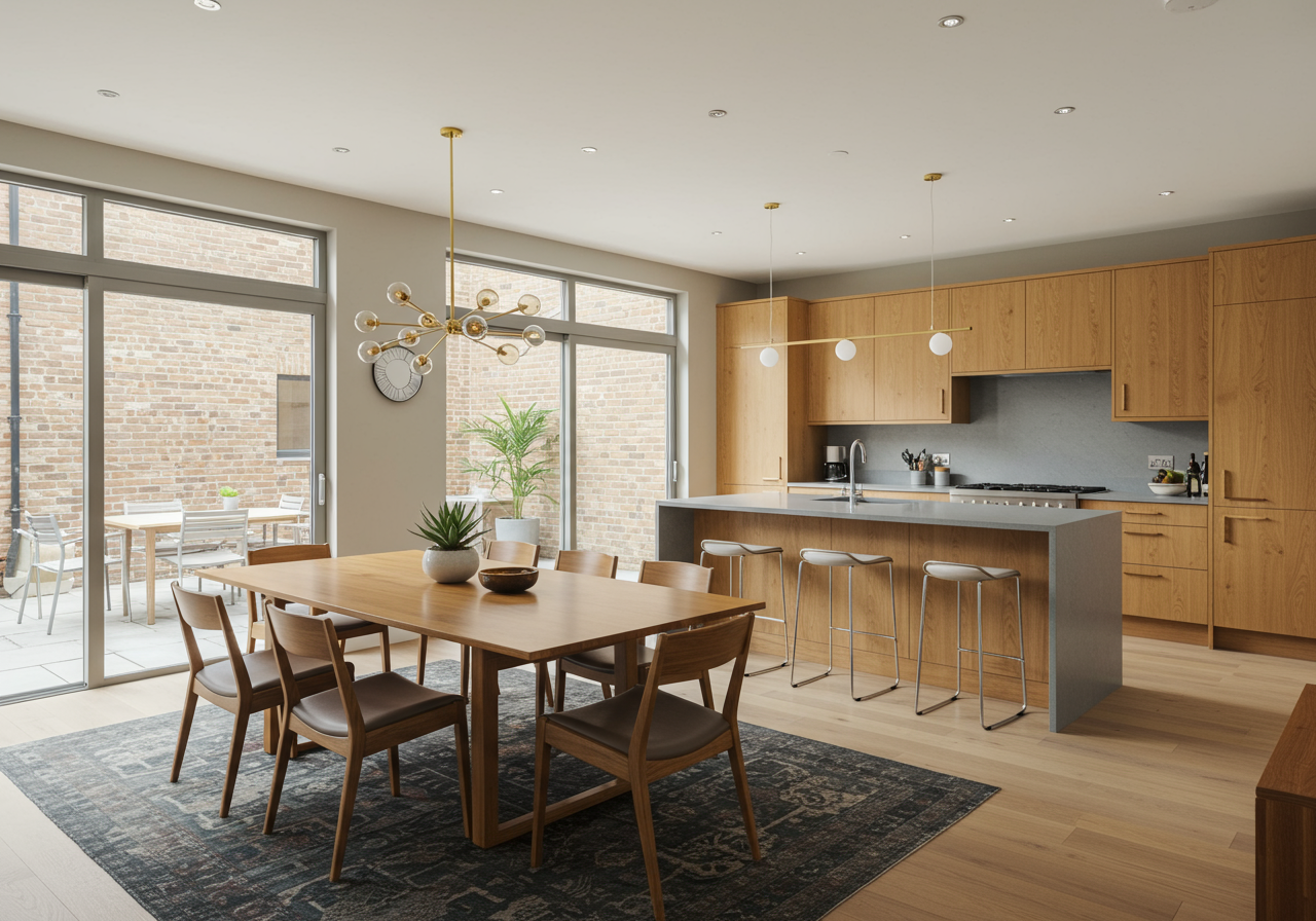 The kitchen opens into the dining room with large glass doors that lead out onto the terrace, creating easy access for dining al fresco, and a great flow for entertaining inside and outside.