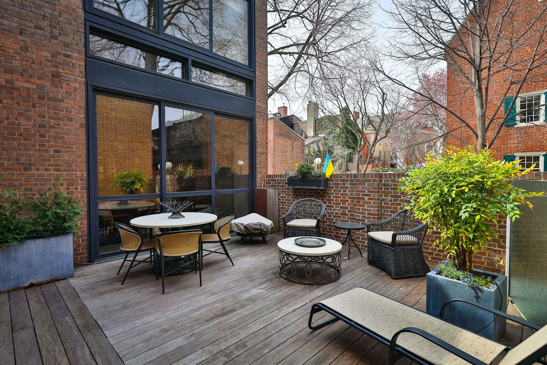 You will be welcomed home into a magnificent 3500-square foot, 3-bedroom, 3.5-bathroom townhome via a private terrace; an unusually large terrace for city dwelling, full of charm, EPI wood decking and self-watering flower and tree containers.